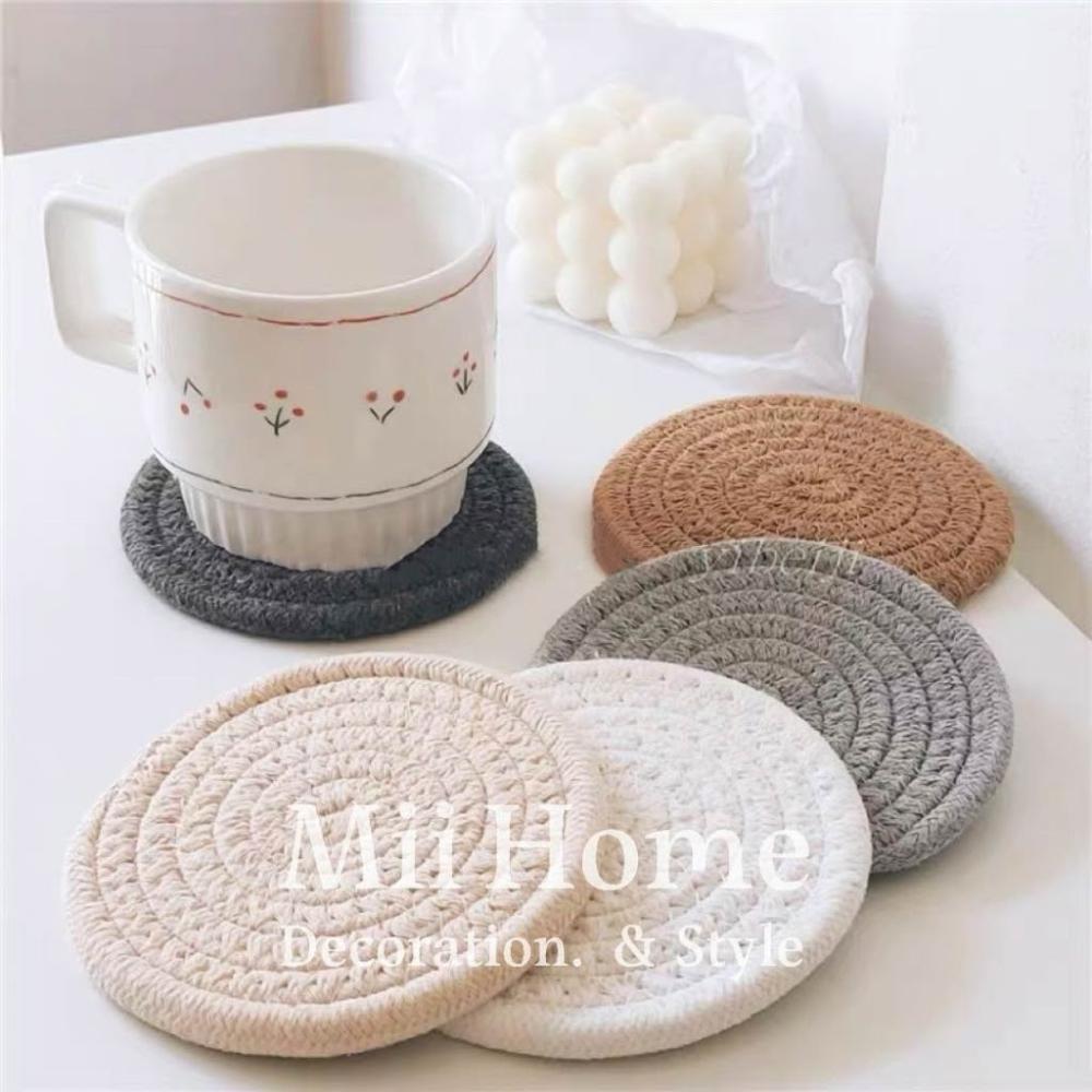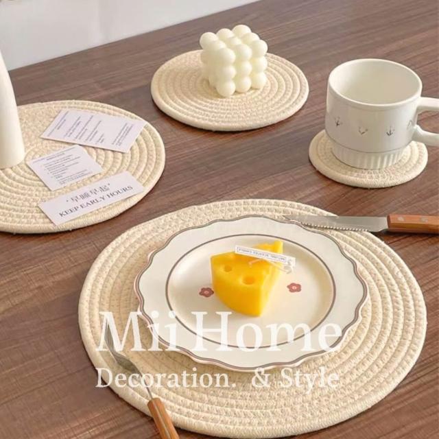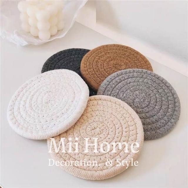 Mii厝邊 奶茶色螺旋杯墊 棉麻杯墊棉麻編織杯墊隔熱墊居家餐廚餐墊裝飾居家吸水墊咖啡廳隔熱墊 拍照佈置