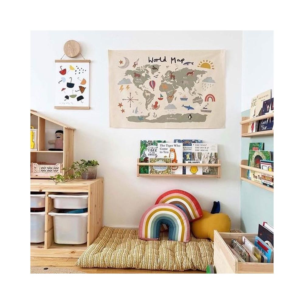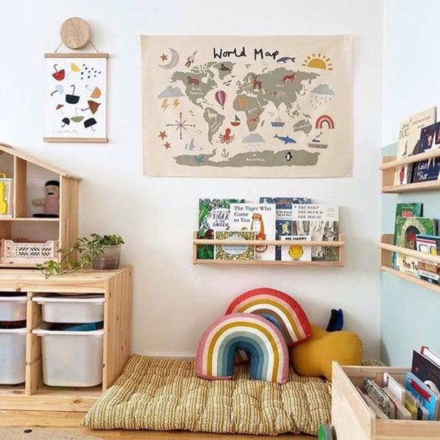 Mii厝邊 贈掛鉤 世界地圖棉麻掛布 彩色世界地圖 掛飾 掛毯 兒童房裝飾可愛佈置背景布牆壁裝飾掛飾桌布露營
