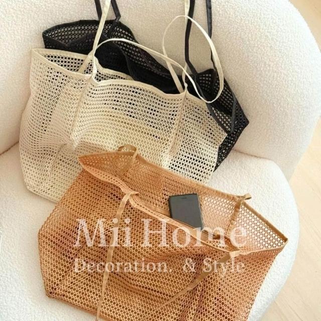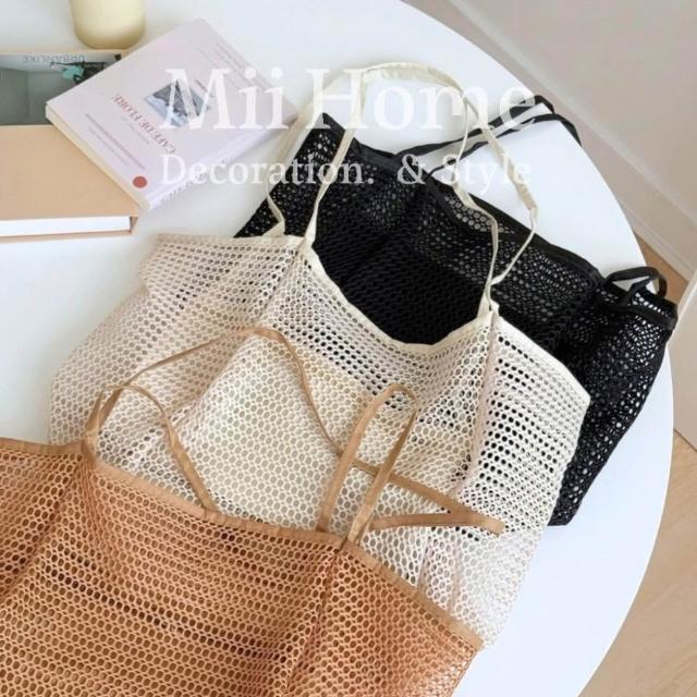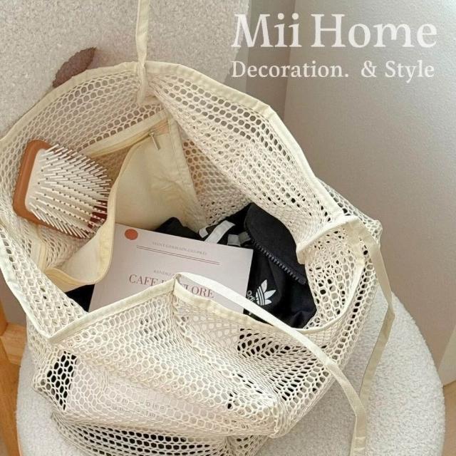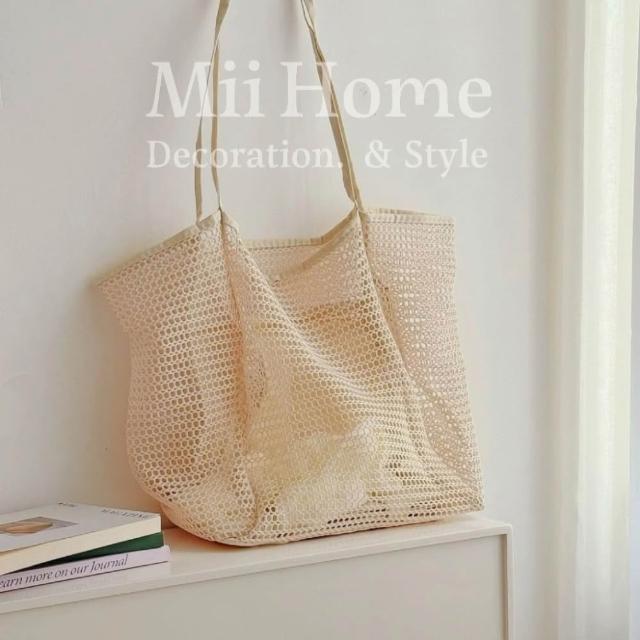 Mii厝邊 大容量防水購物袋 網格提袋 防水提袋 隨身袋 網紗購物袋 網紗收納袋 沙灘玩具收納袋 海灘