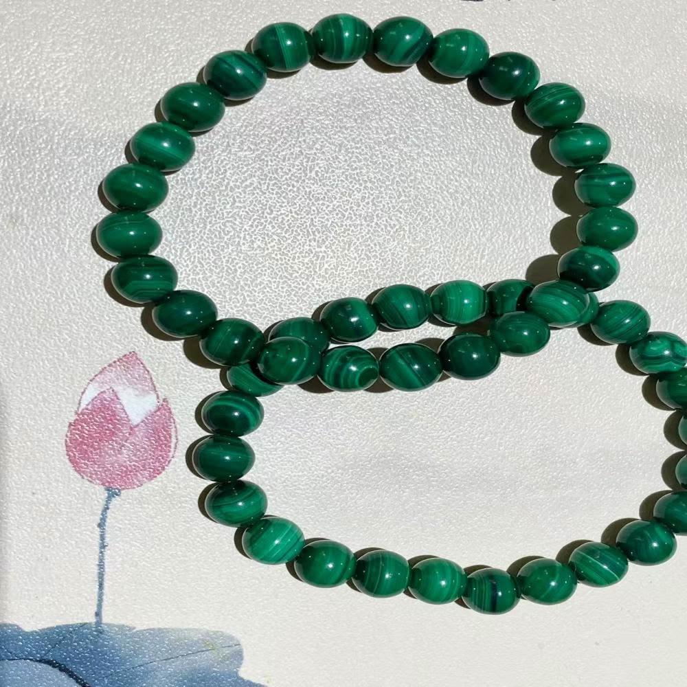 [佰財珠寶]天然高品質孔雀石手串墨綠色水波紋 增強行動力 平靜情緒的能量