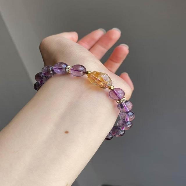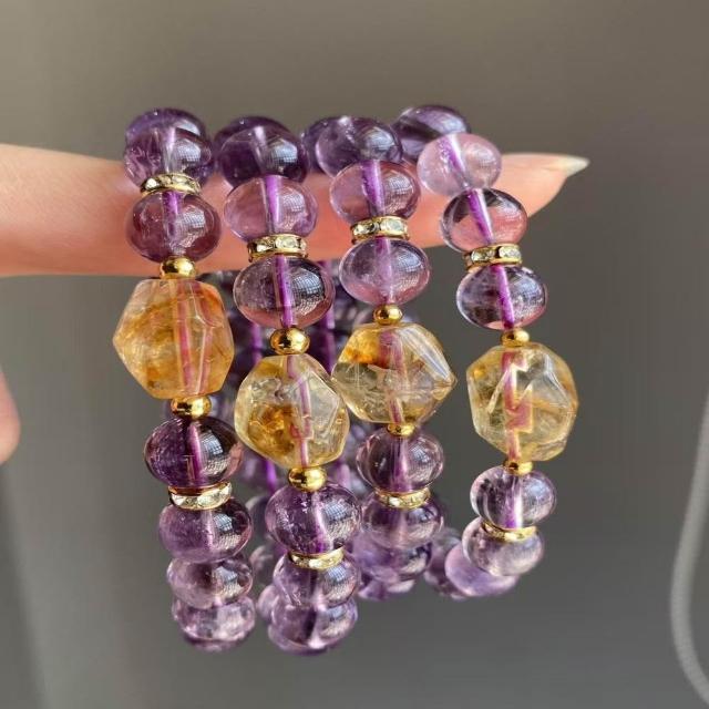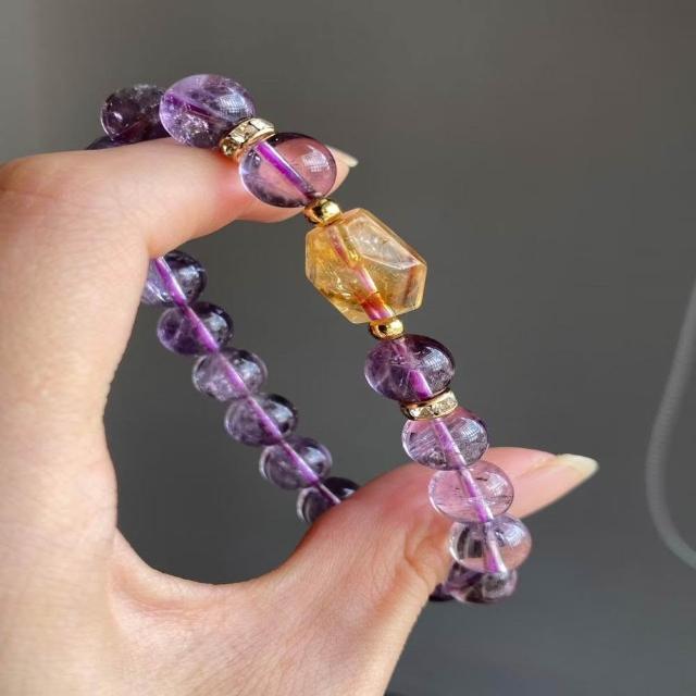 佰財珠寶]9mm天然玻利維亞紫水晶➕黃塔晶隨行DIY手串增加財富提升智慧舒緩情緒淨化負能量