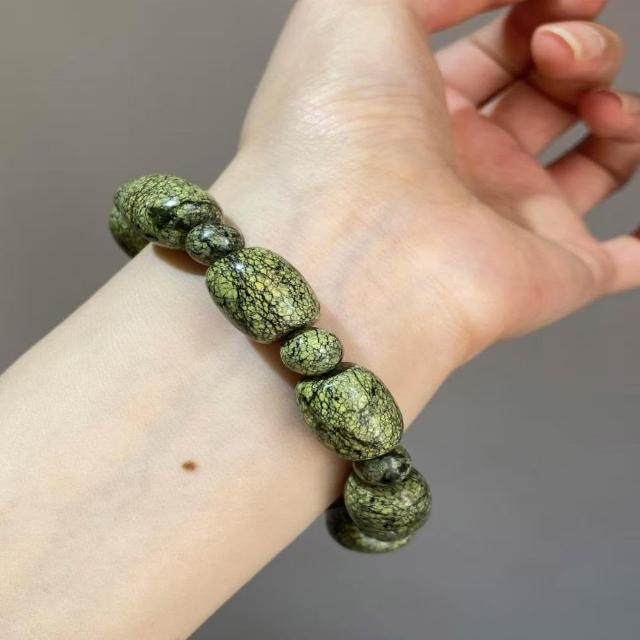 [佰財珠寶]12mm天然藏玉藥王石桶珠手串