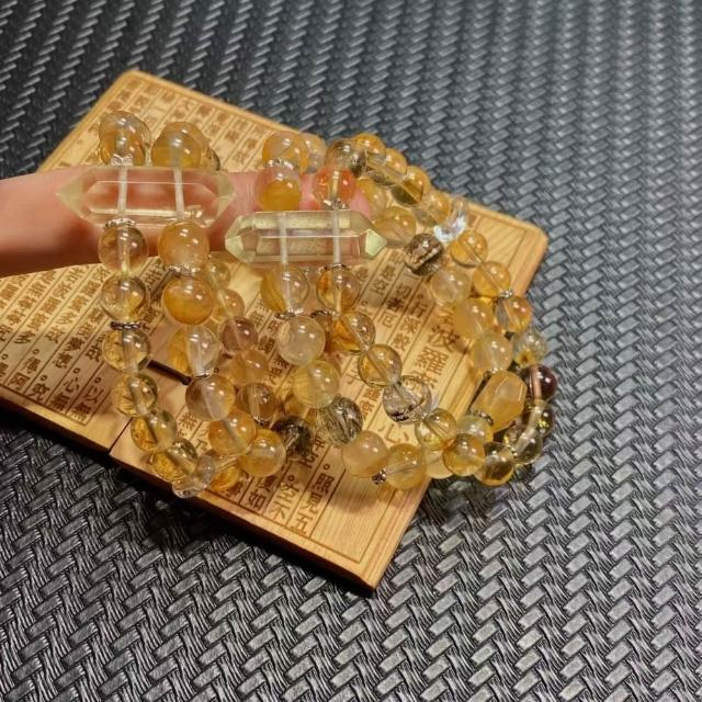 [佰財珠寶]8mm天然黃膠花和黃水晶獨家設計款雙圈手串