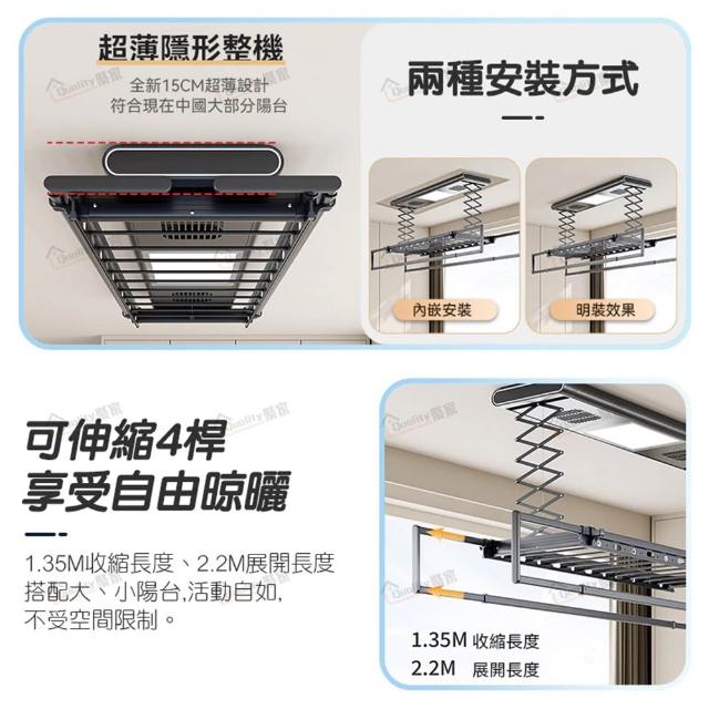 Quality 聚家 110V電動晾衣架 智能可升降曬衣架 自動曬衣 遙控+壁控 可升降伸縮 烘乾殺菌曬衣架