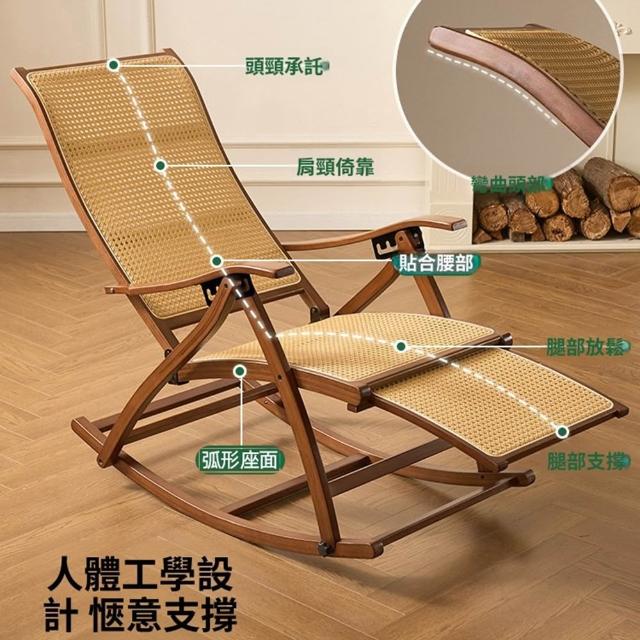 Quality 聚家搖搖椅 藤編躺椅 午休藤椅(人體工學設計/5檔調節)折疊躺椅 陽台休閒椅 懶人椅 老人逍遙椅