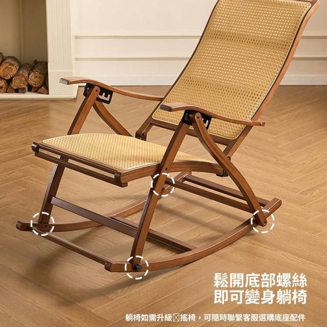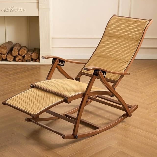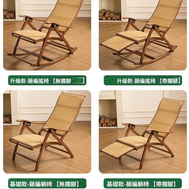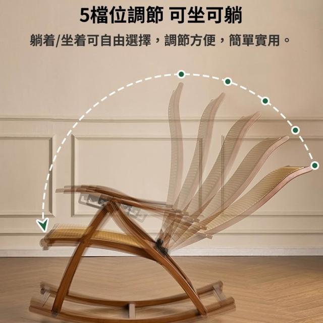 Quality 聚家搖搖椅 藤編躺椅 午休藤椅(人體工學設計/5檔調節)折疊躺椅 陽台休閒椅 懶人椅 老人逍遙椅