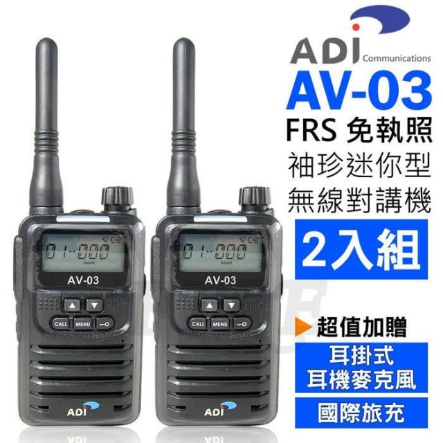 ADI(耳掛耳機or空導+旅充) AV-03 袖珍迷你型 FRS 免執照 無線電對講機 (2入組)