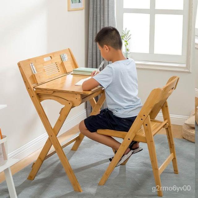可折疊學習桌椅免安裝傢用學生兒童書桌寫字多功能經濟型實木課桌 學習桌 班課桌 兒童學習桌椅 寫字桌 書桌 8ZFV