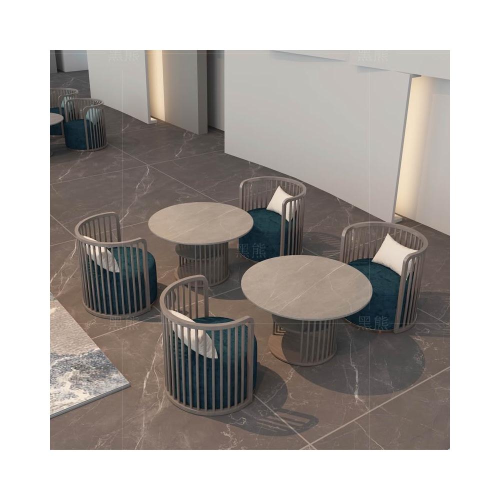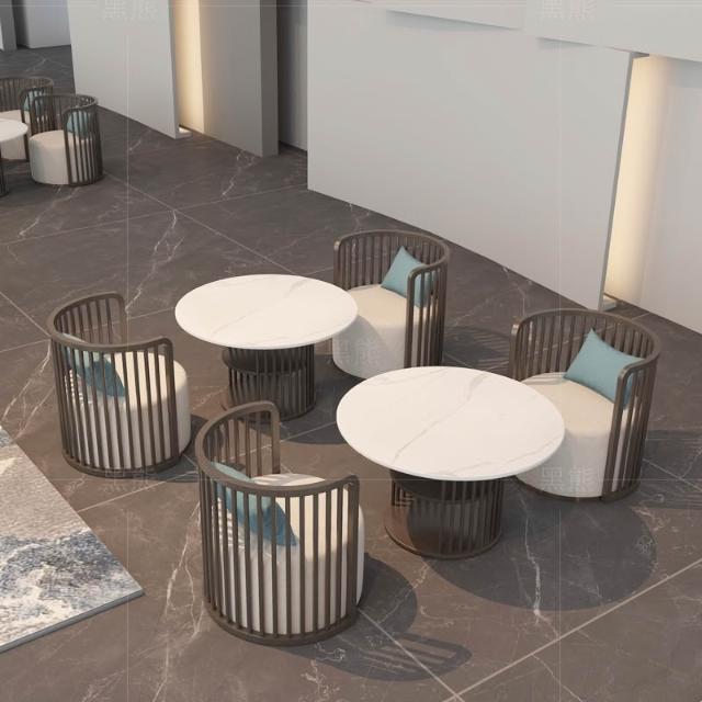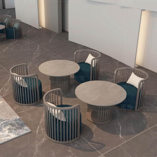 新中式售樓處洽談桌椅組合輕奢高端酒店實木單人沙發休閑一桌三椅 洽談桌 桌子