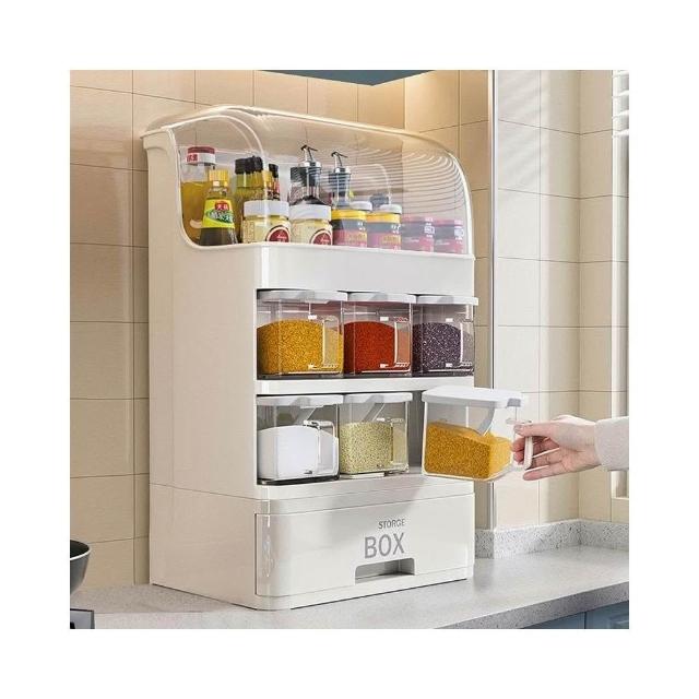 帶蓋調味調料盒套裝醬油醋瓶糖鹽罐子置物架抽屜式廚房用品收納盒廚房置物架 碗盤瀝水架 廚房收納架 洗碗池收納架 收納架 7
