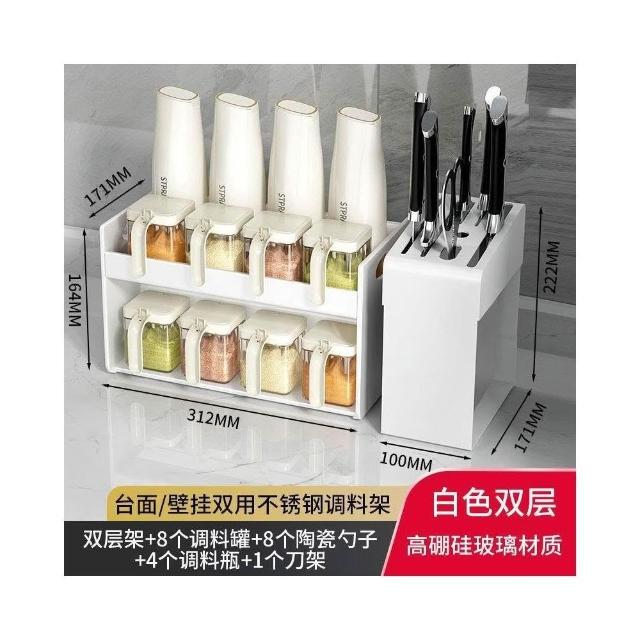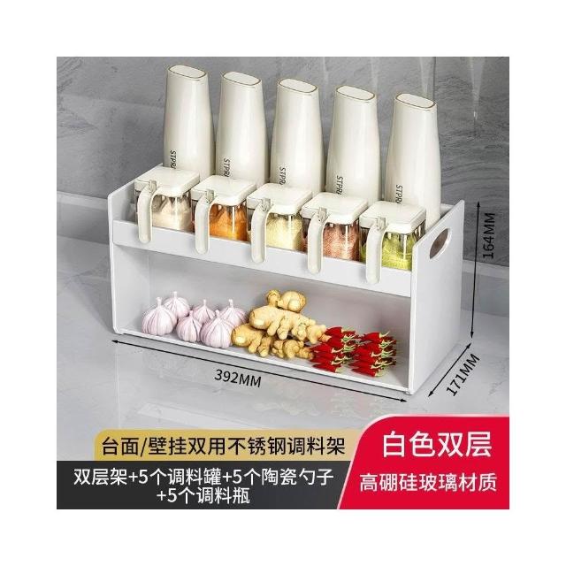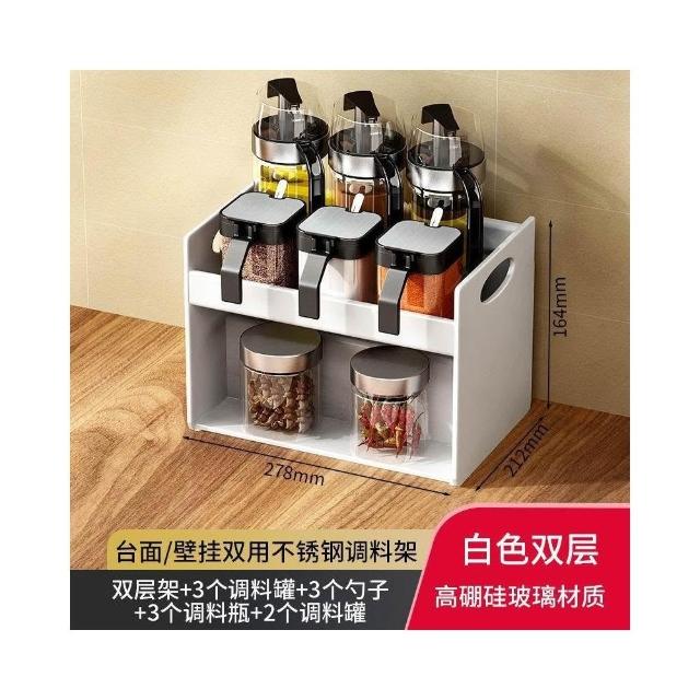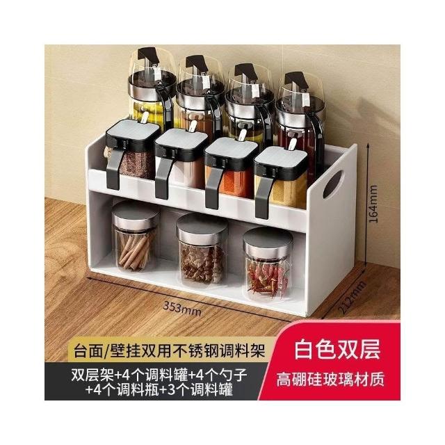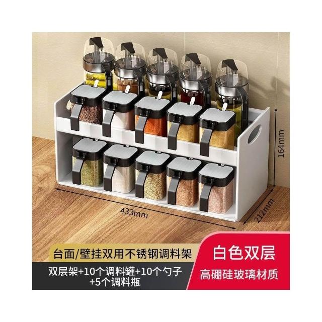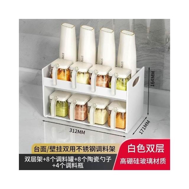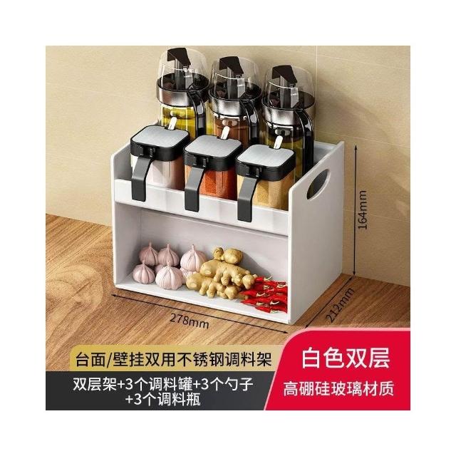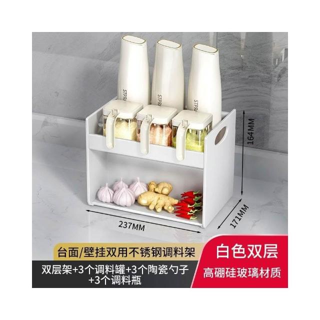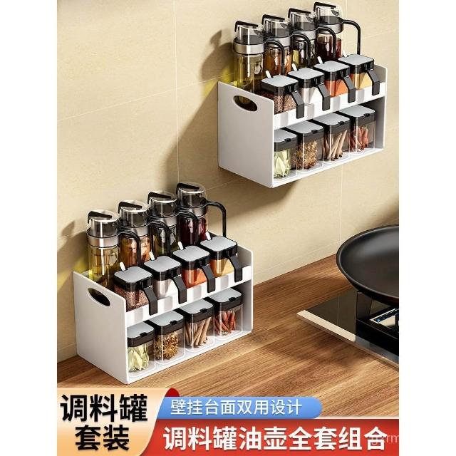 調料盒傢用廚房鹽調味罐收納盒壁掛式墻上免打孔調味瓶罐組閤套裝廚房置物架 碗盤瀝水架 廚房收納架 洗碗池收納架 收納架 A