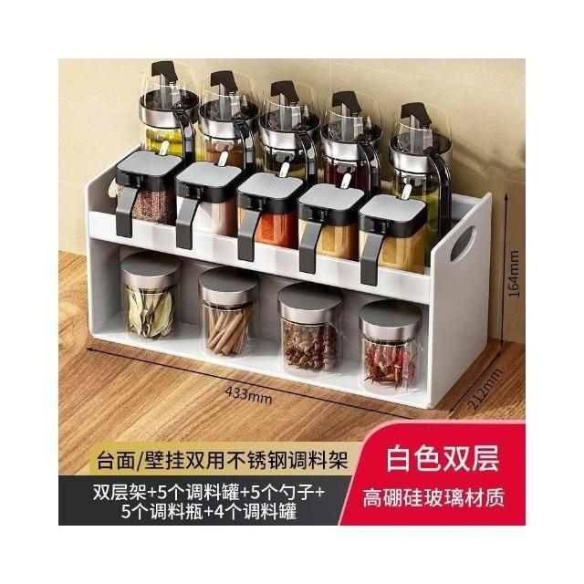 調料盒傢用廚房鹽調味罐收納盒壁掛式墻上免打孔調味瓶罐組閤套裝廚房置物架 碗盤瀝水架 廚房收納架 洗碗池收納架 收納架 A