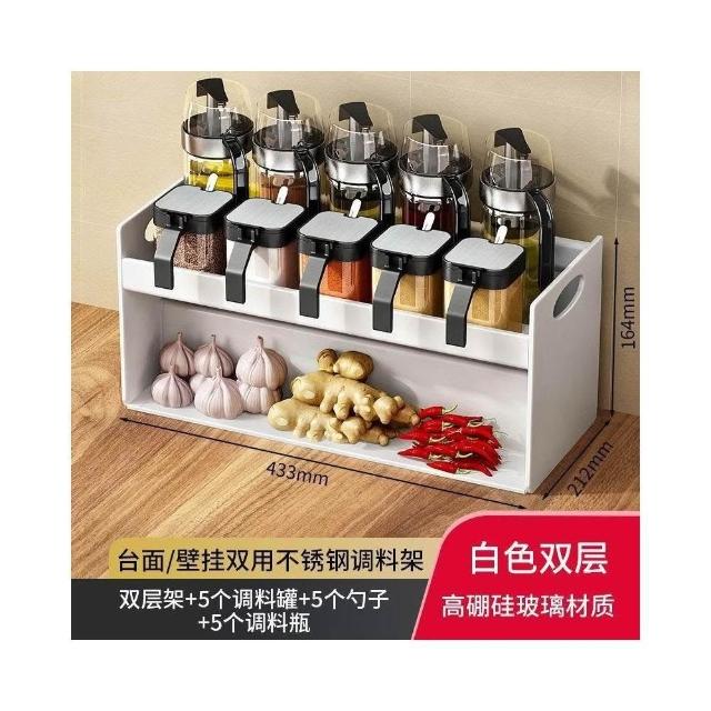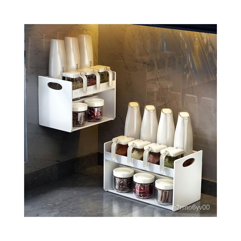 調料盒傢用廚房鹽調味罐收納盒壁掛式墻上免打孔調味瓶罐組閤套裝廚房置物架 碗盤瀝水架 廚房收納架 洗碗池收納架 收納架 A