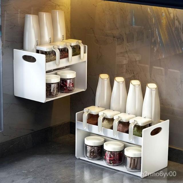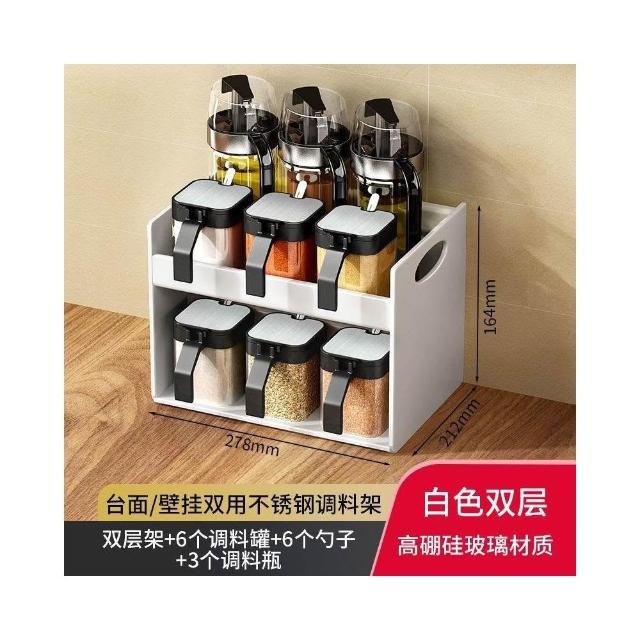 調料盒傢用廚房鹽調味罐收納盒壁掛式墻上免打孔調味瓶罐組閤套裝廚房置物架 碗盤瀝水架 廚房收納架 洗碗池收納架 收納架 A
