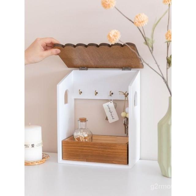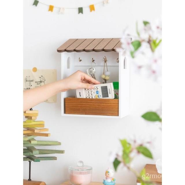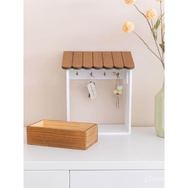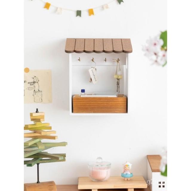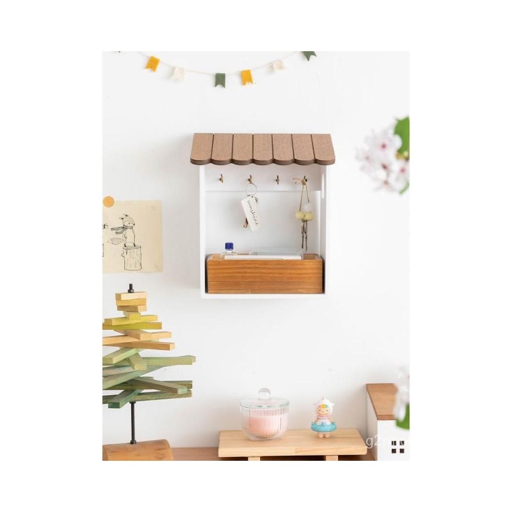 阿楹 門口鑰匙收納盒擺件實木壁掛式 網紅掛架入戶玄關鞋櫃墻裝飾壁掛置物架 墻上置物架 牆壁收納 牆壁展示架 牆上收納 S