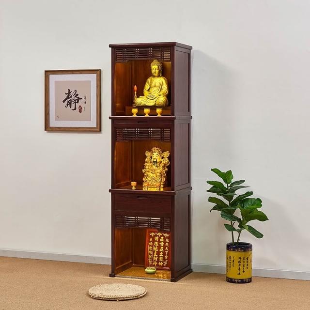 新中式實木三層榆木佛龕神櫃家用現代風格祖先觀音立櫃供桌神龕櫃 神明桌 神桌 供桌 佛桌 祖先桌 公媽桌