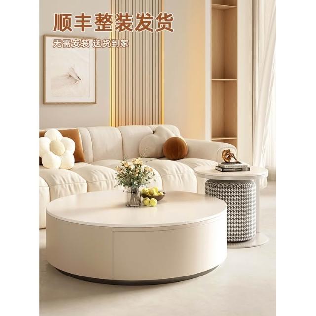 奶油風岩板茶几桌輕奢現代小戶型大小圓客廳家用現代簡約茶几組合茶几 邊幾 客廳茶几