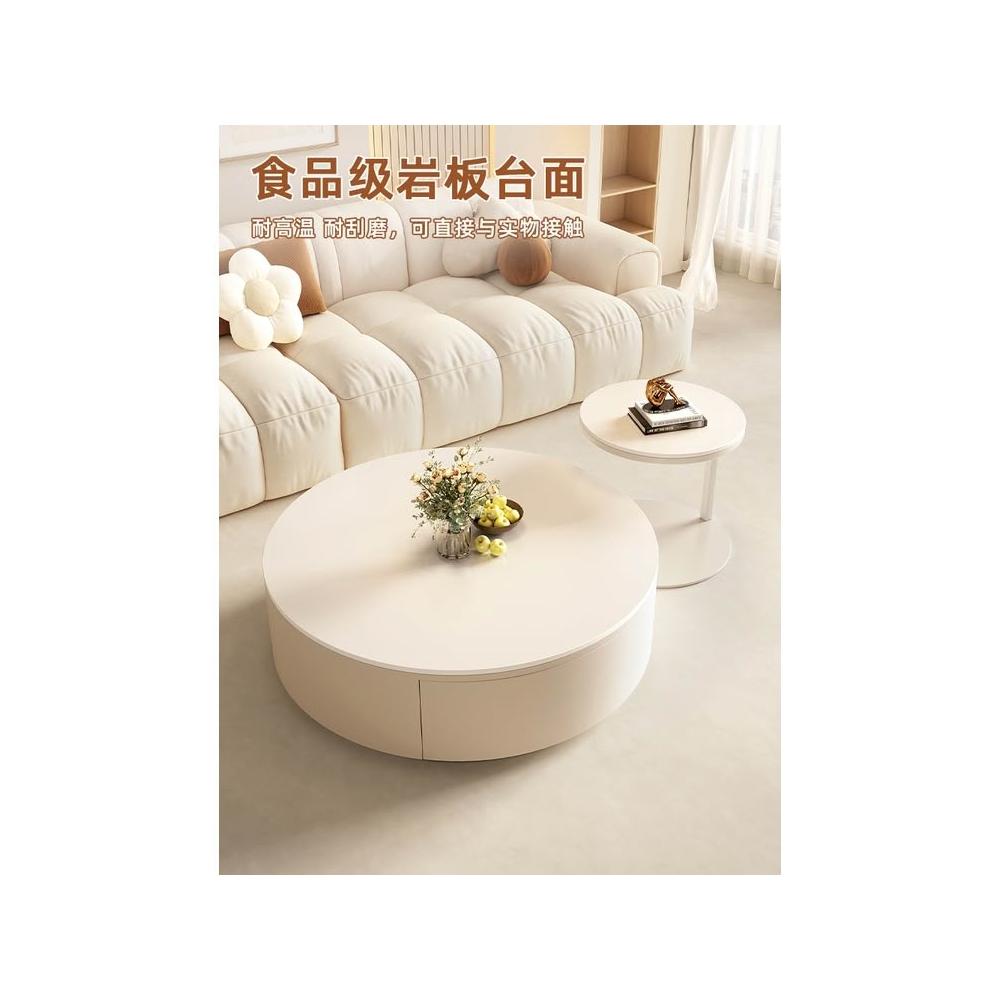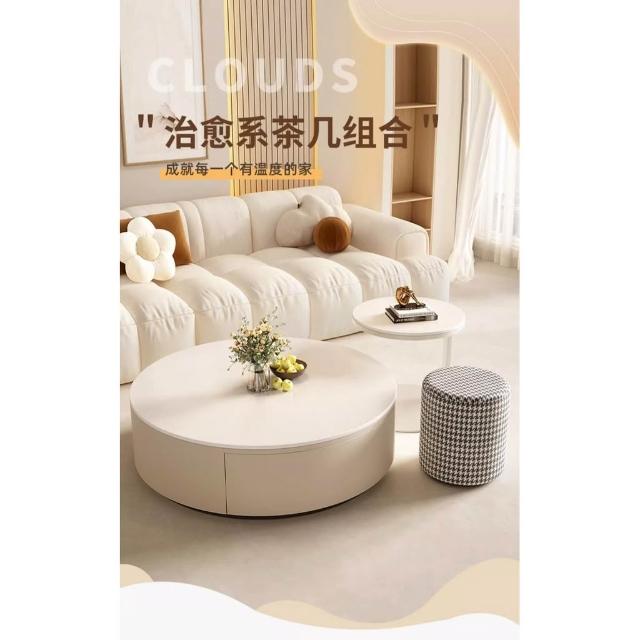 奶油風岩板茶几桌輕奢現代小戶型大小圓客廳家用現代簡約茶几組合茶几 邊幾 客廳茶几