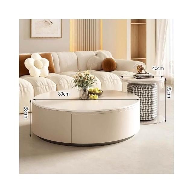 奶油風岩板茶几桌輕奢現代小戶型大小圓客廳家用現代簡約茶几組合茶几 邊幾 客廳茶几