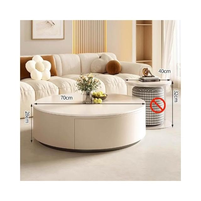 奶油風岩板茶几桌輕奢現代小戶型大小圓客廳家用現代簡約茶几組合茶几 邊幾 客廳茶几