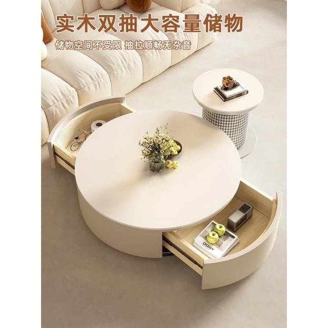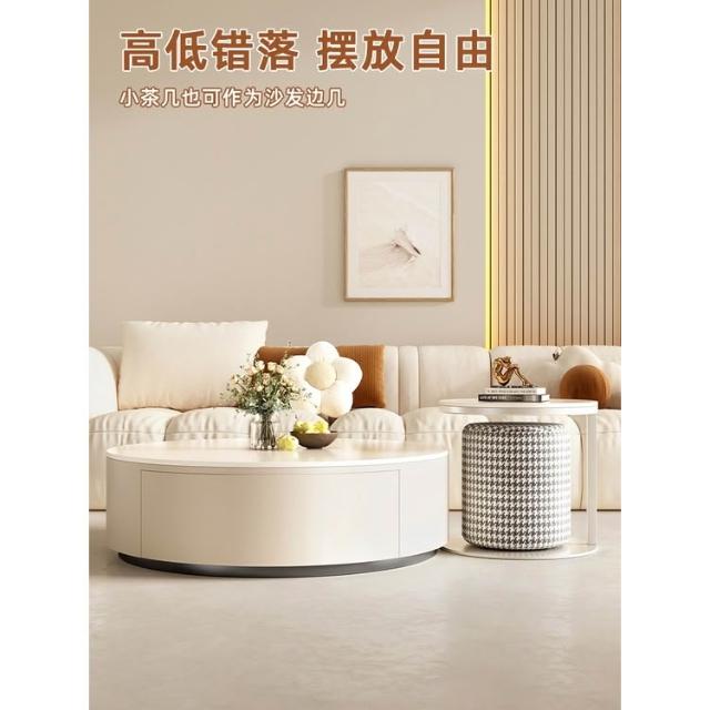 奶油風岩板茶几桌輕奢現代小戶型大小圓客廳家用現代簡約茶几組合茶几 邊幾 客廳茶几