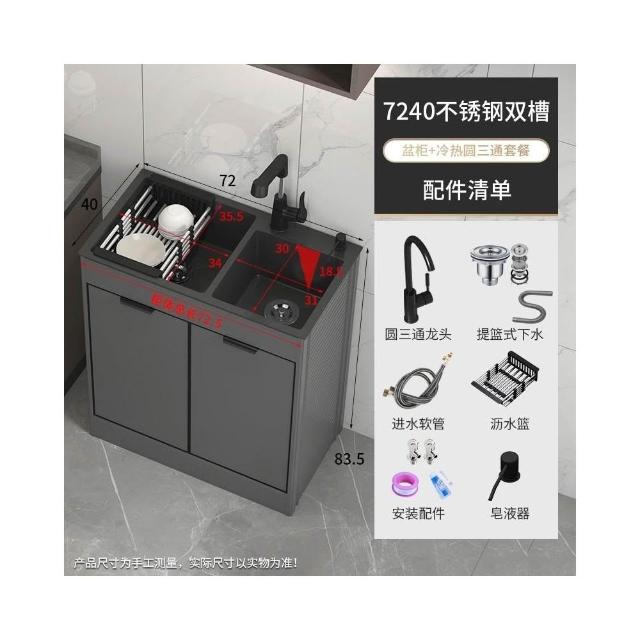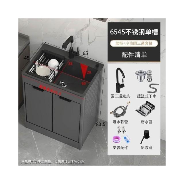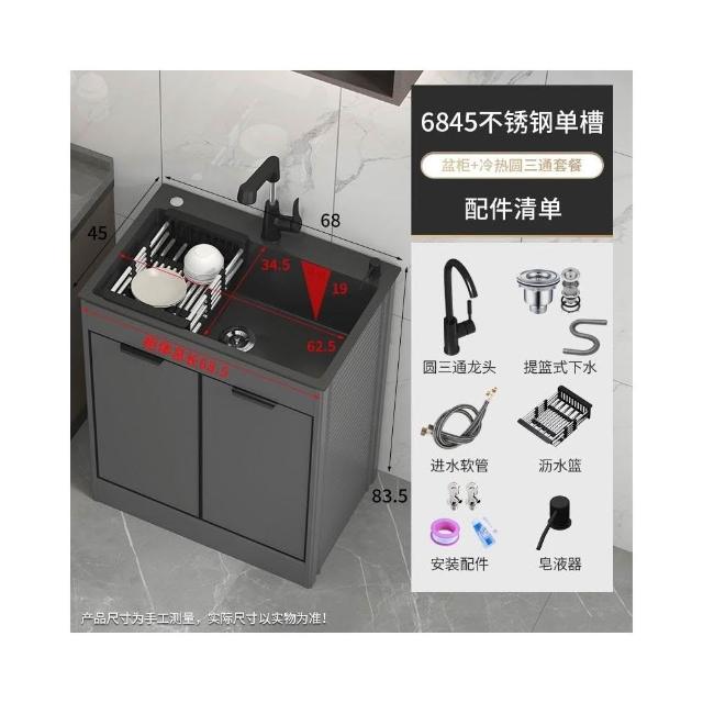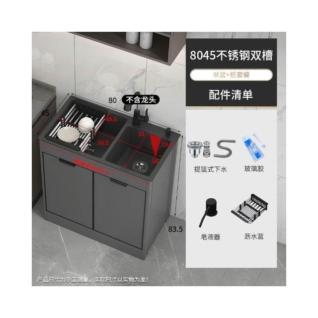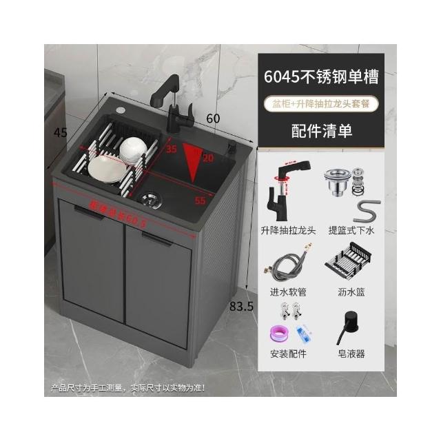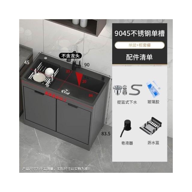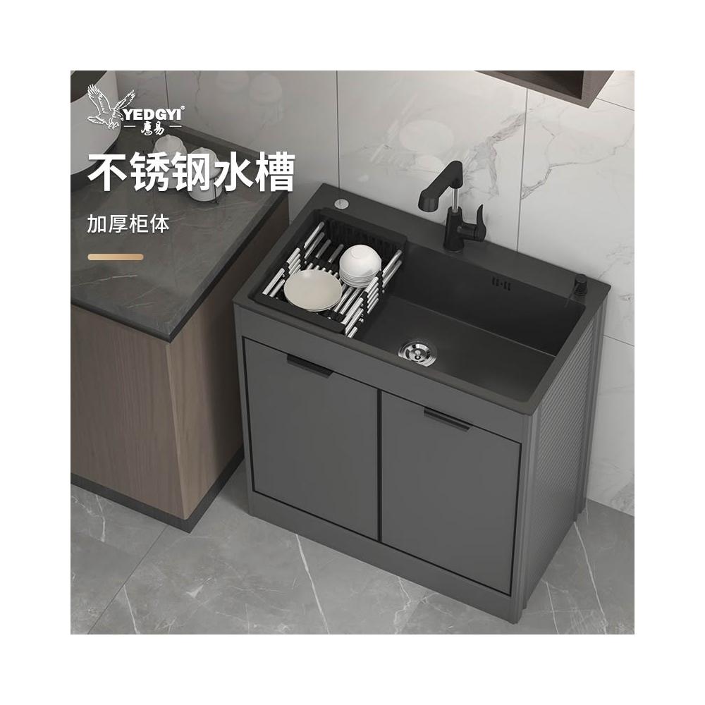 家用不銹鋼洗菜盆一體式落地櫃廚房單水槽黑色陽台洗碗洗手池水盆水槽 水盆 洗手盆
