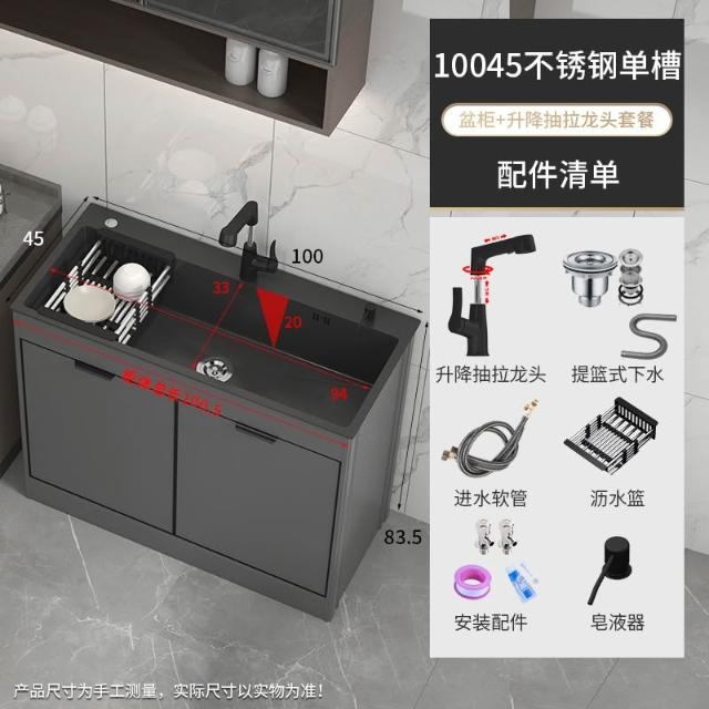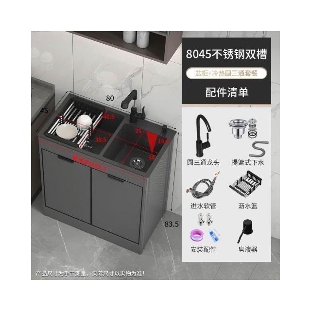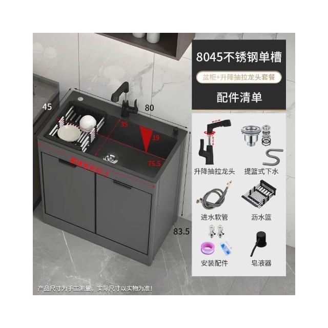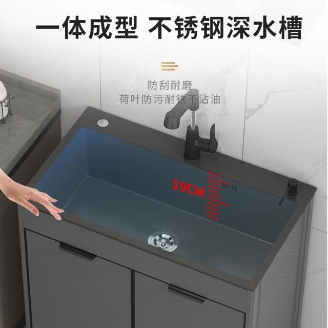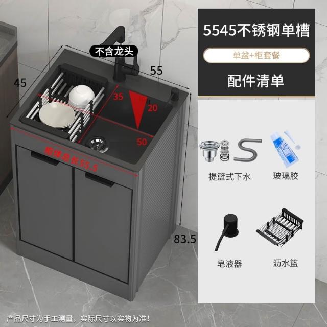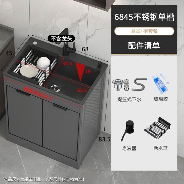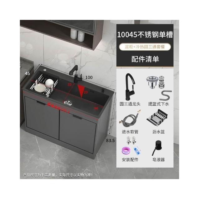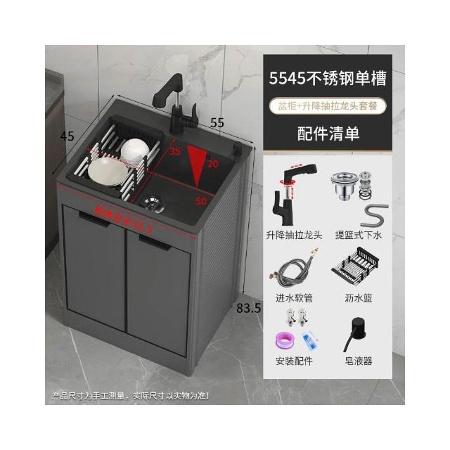 家用不銹鋼洗菜盆一體式落地櫃廚房單水槽黑色陽台洗碗洗手池水盆水槽 水盆 洗手盆