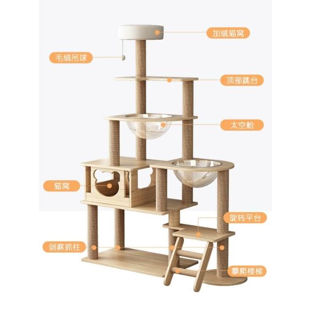 猫爬架猫窝猫树一体猫笼太空舱隧道跳台四季通用大型猫咪猫架用品貓爬架 貓抓柱 通天柱