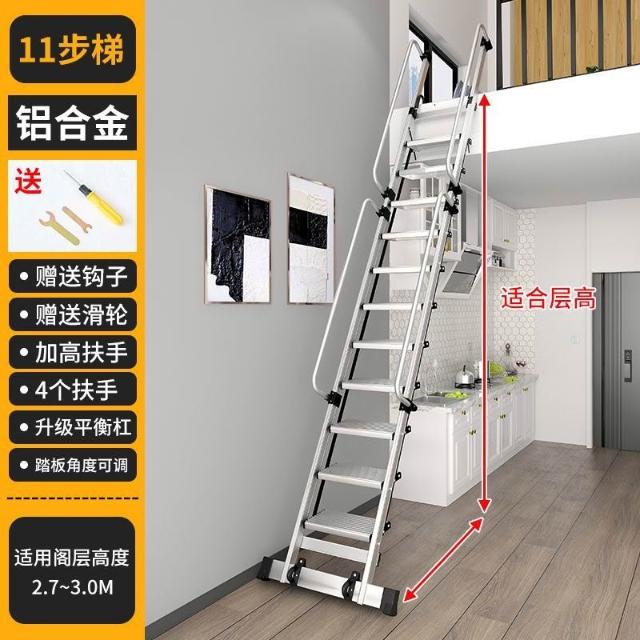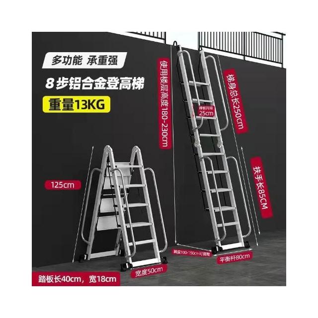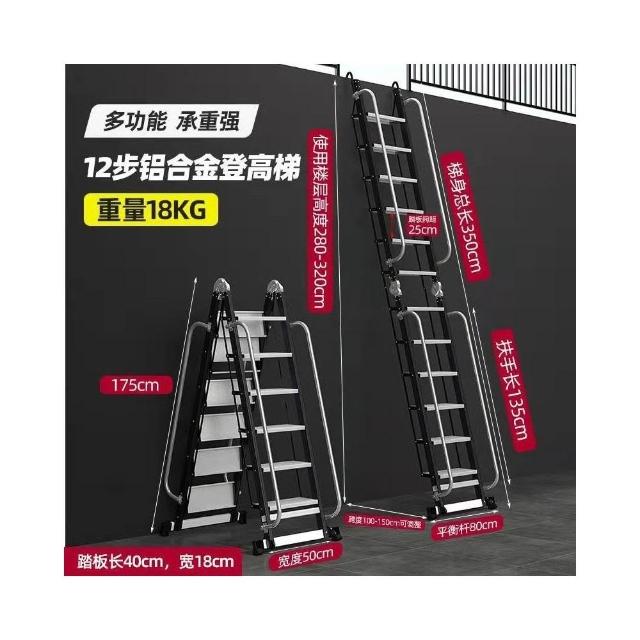 閣樓伸縮樓梯傢用折疊加厚室外人字梯鋁閤金爬梯移動室內扶手梯子梯子 工具梯 伸縮梯 樓梯 8415