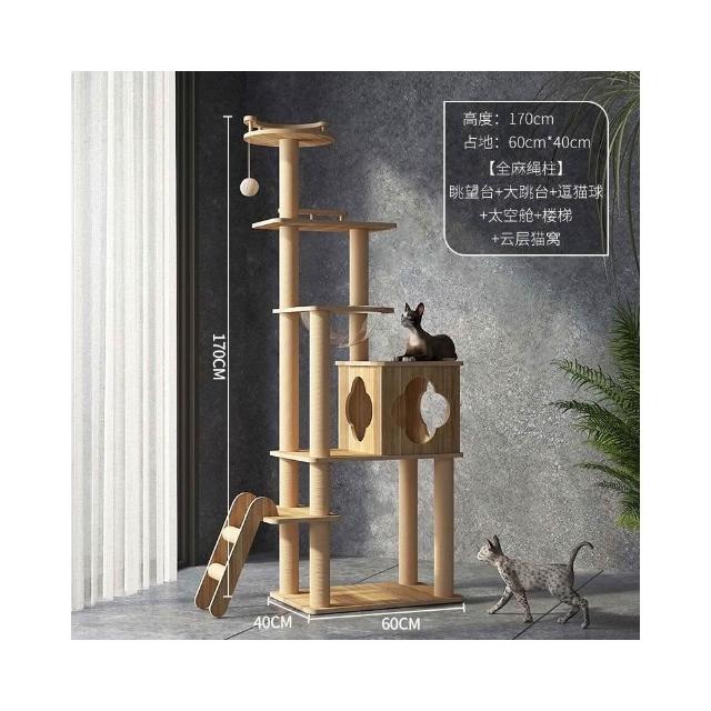 猫爬架猫窝猫树一体猫抓板猫爬架子不占地太空舱通天柱实木猫跳台貓爬架 貓抓柱 通天柱
