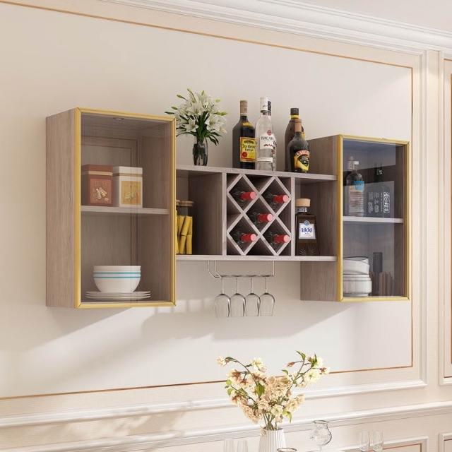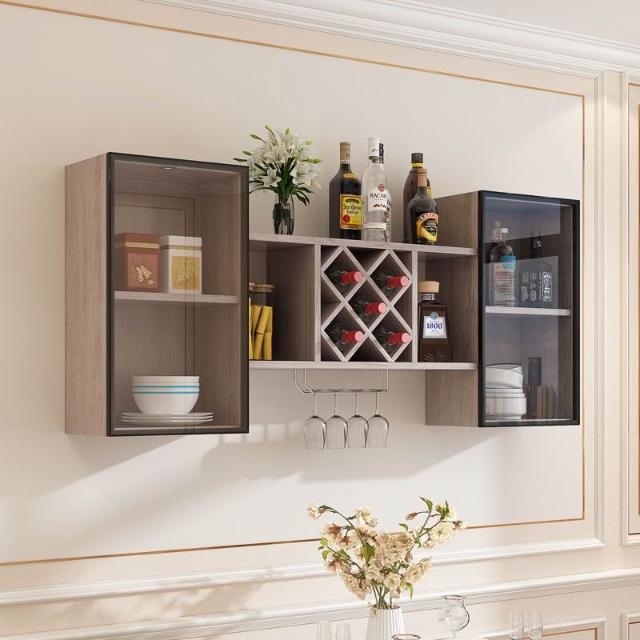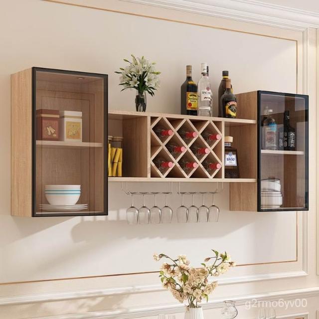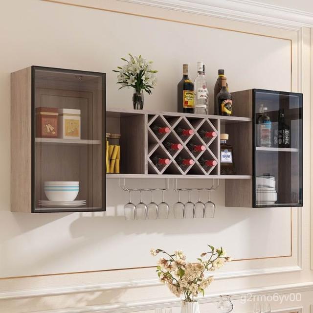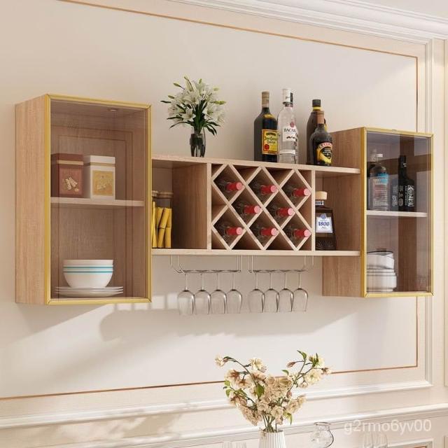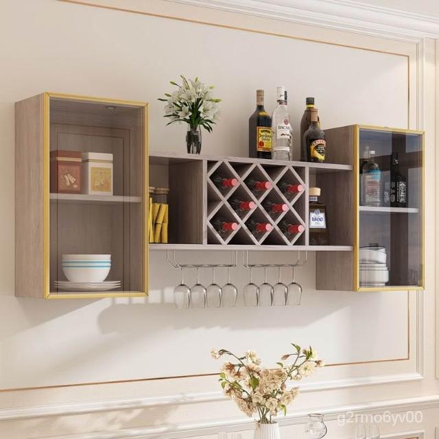 墻上酒櫃酒架壁掛式紅酒高腳杯杯掛架餐廳客廳玻璃門掛墻置物架 儲物櫃 收納櫃 弔櫃 墻壁櫃 櫥櫃 置物櫃 廚房弔櫃 64X
