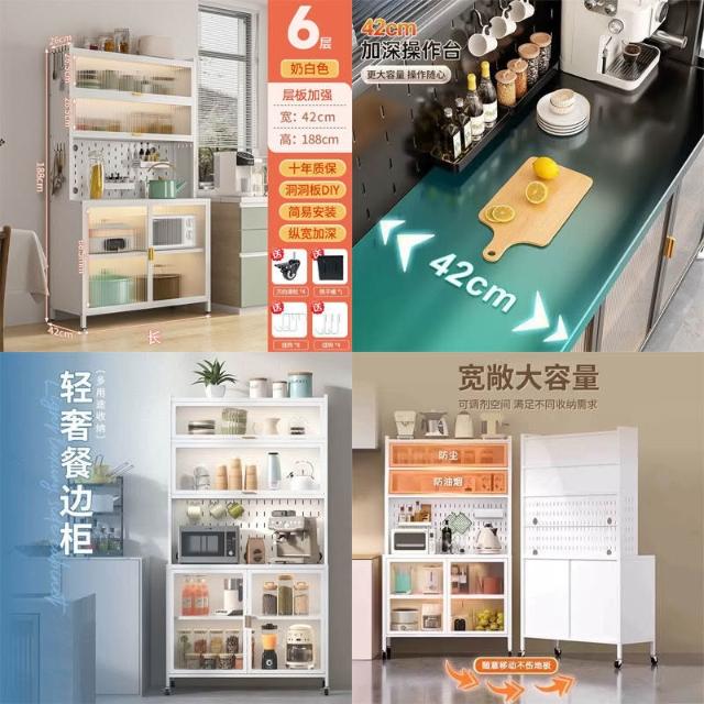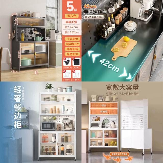 碳鋼餐邊櫃 鋼製鐵藝操作臺 洞洞闆置物架 多功能儲物櫃 電器櫃 廚房櫃 餐櫥櫃 收納櫃子 櫃子收納櫃