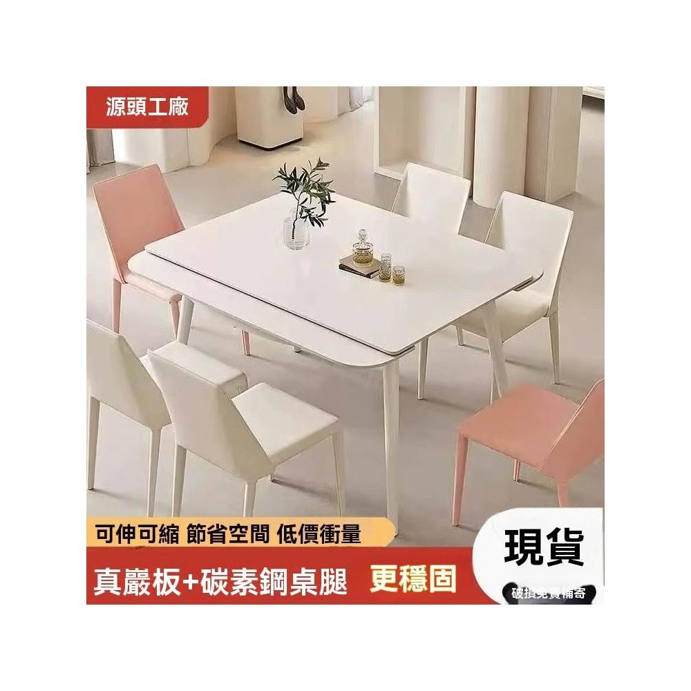 法式巖闆餐桌 正方形餐桌 可伸縮折疊傢用小戶型(桌子/餐桌/餐桌椅/折疊桌/餐桌椅組/桌椅/餐廚桌)