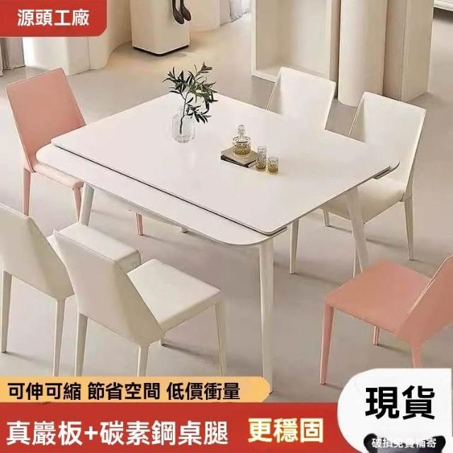 法式巖闆餐桌 正方形餐桌 可伸縮折疊傢用小戶型(桌子/餐桌/餐桌椅/折疊桌/餐桌椅組/桌椅/餐廚桌)