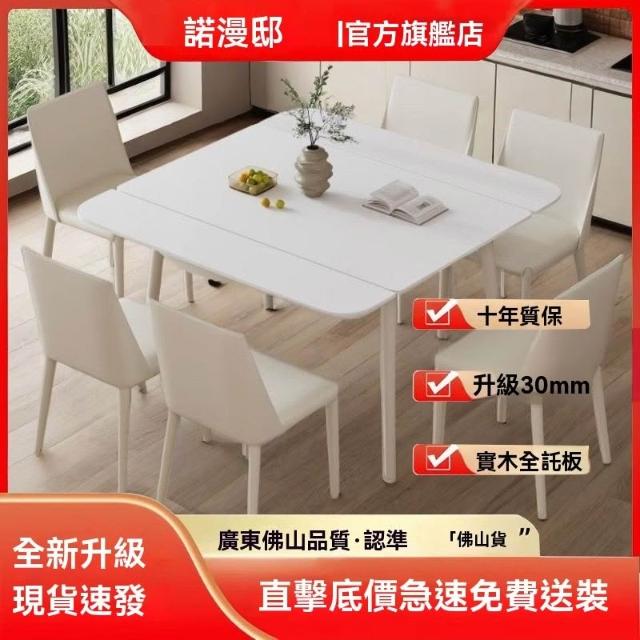 法式巖闆餐桌 正方形餐桌 可伸縮折疊傢用小戶型(桌子/餐桌/餐桌椅/折疊桌/餐桌椅組/桌椅/餐廚桌)