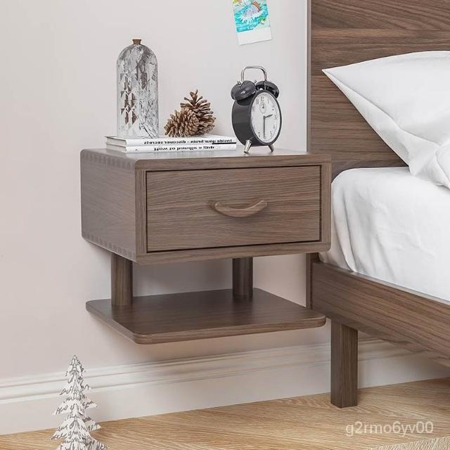 全實木床頭櫃掛墻懸浮北歐日式床邊櫃壁掛懸空創意設計網紅小戶型簡約壁掛床頭櫃 臥室收納櫃 床邊置物架收納架懸空邊角櫃 G2