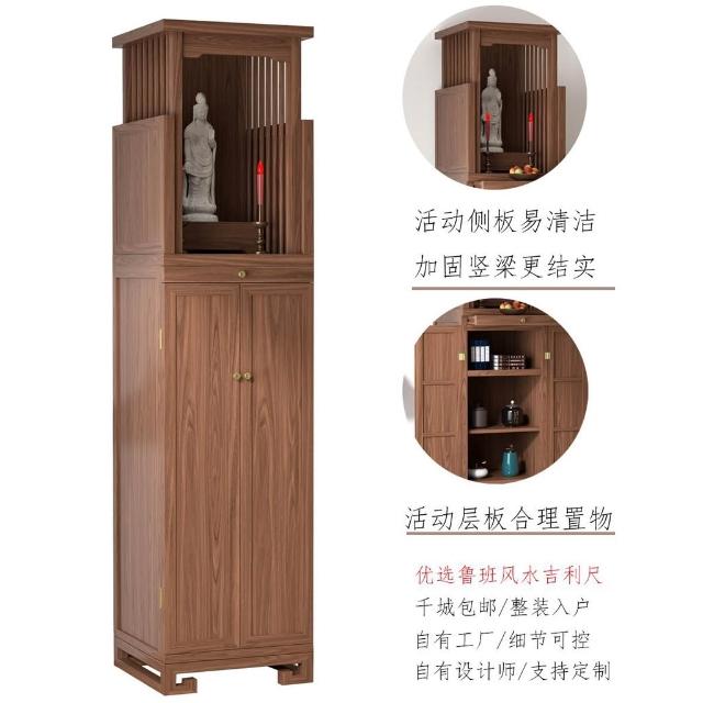 實木佛龕新中式立櫃現代神台供桌家用財神櫃黑胡桃木簡約日式神龕 神明桌 神桌 供桌 佛桌 祖先桌 公媽桌