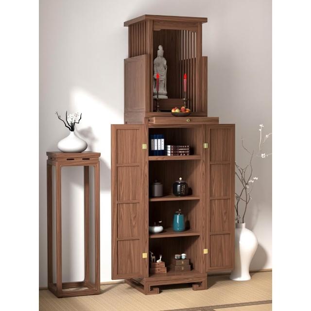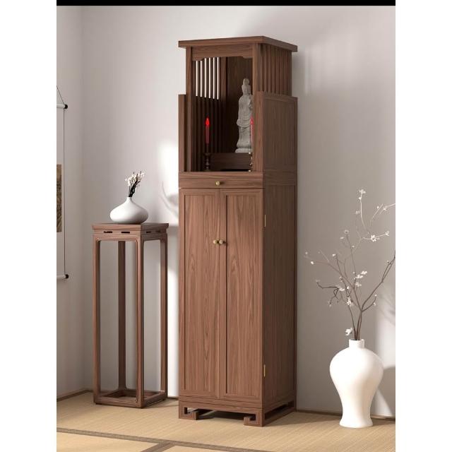 實木佛龕新中式立櫃現代神台供桌家用財神櫃黑胡桃木簡約日式神龕 神明桌 神桌 供桌 佛桌 祖先桌 公媽桌