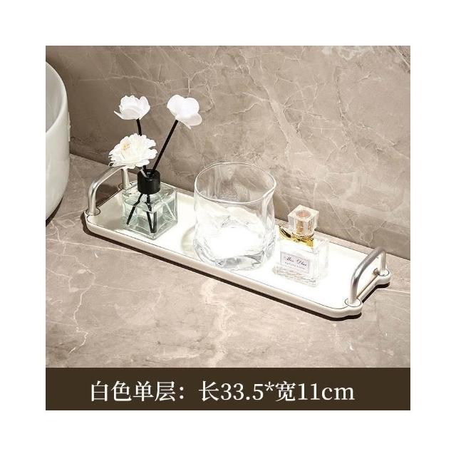 雙層浴室化妝品置物架窄邊洗手臺衛生間洗漱臺洗手臺收納陶瓷託盤桌上置物架 桌上層架 文具架 桌麵 收納架 桌上收納 HHF