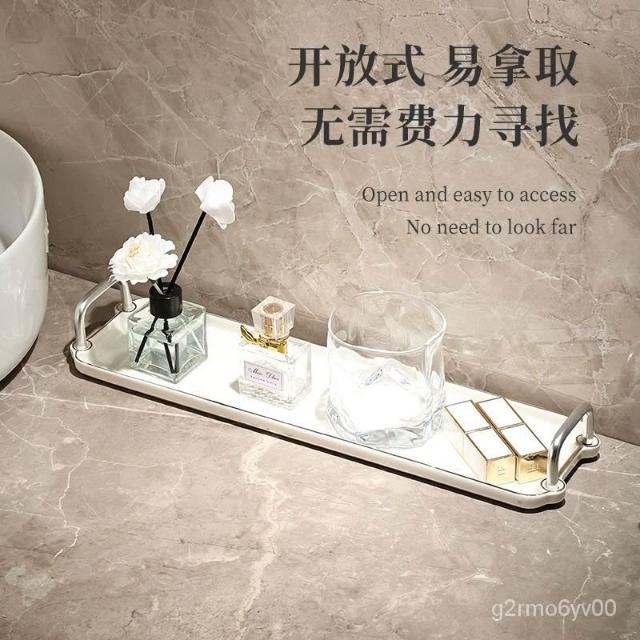 雙層浴室化妝品置物架窄邊洗手臺衛生間洗漱臺洗手臺收納陶瓷託盤桌上置物架 桌上層架 文具架 桌麵 收納架 桌上收納 HHF
