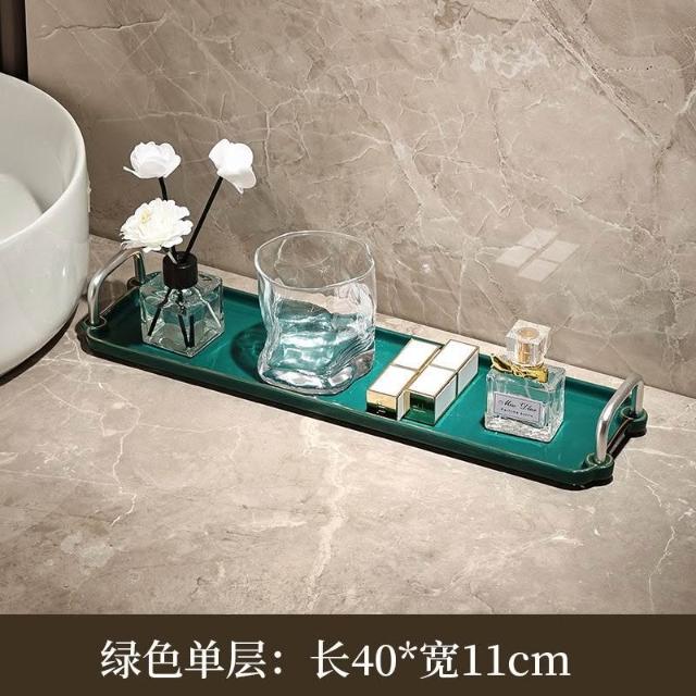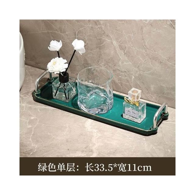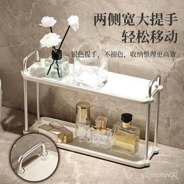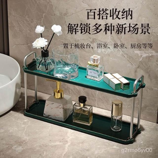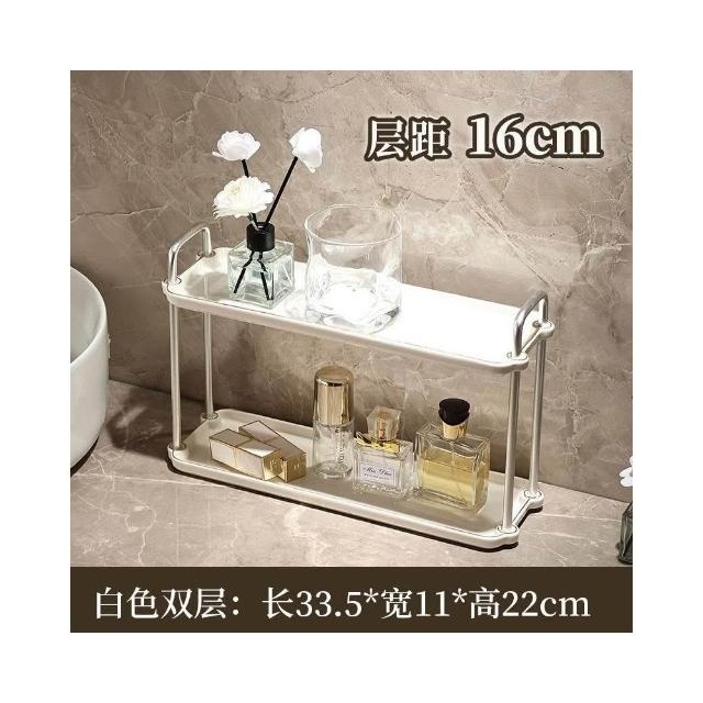雙層浴室化妝品置物架窄邊洗手臺衛生間洗漱臺洗手臺收納陶瓷託盤桌上置物架 桌上層架 文具架 桌麵 收納架 桌上收納 HHF