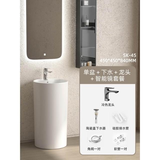 免運 陽台立柱盆小戶型衛生間落地式洗臉盆戶外庭院陶瓷一體立柱洗手盆 洗手盤 洗手台