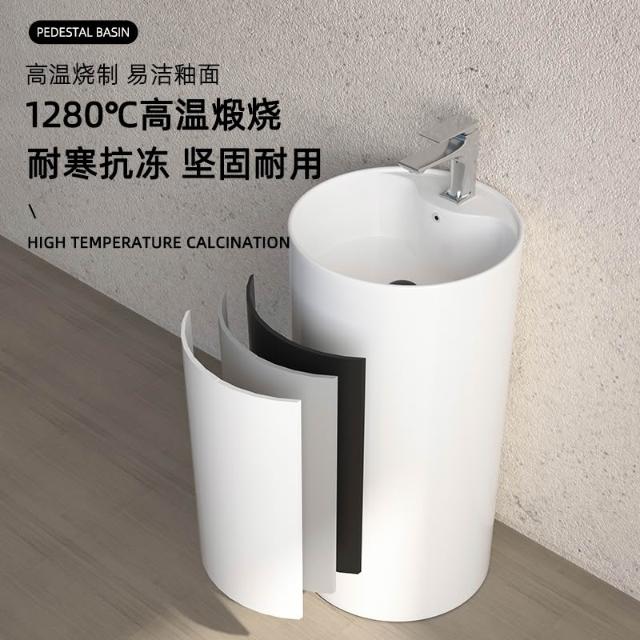 免運 陽台立柱盆小戶型衛生間落地式洗臉盆戶外庭院陶瓷一體立柱洗手盆 洗手盤 洗手台