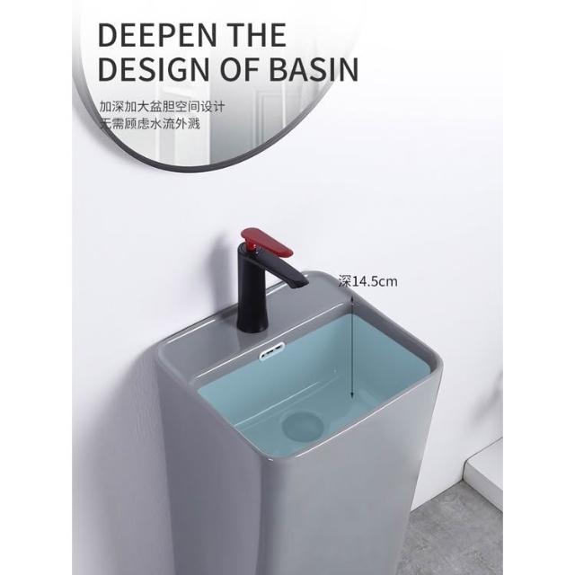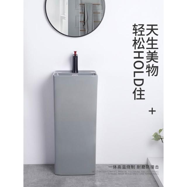 免運 創意小戶型陶瓷一體式立柱盆落地洗手盆家用衛生間洗臉盆洗面盆方 洗手盤 洗手台