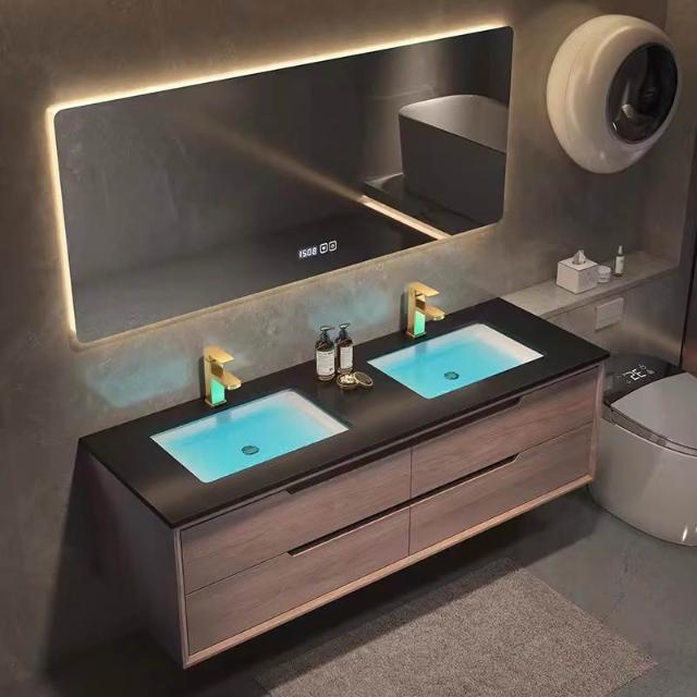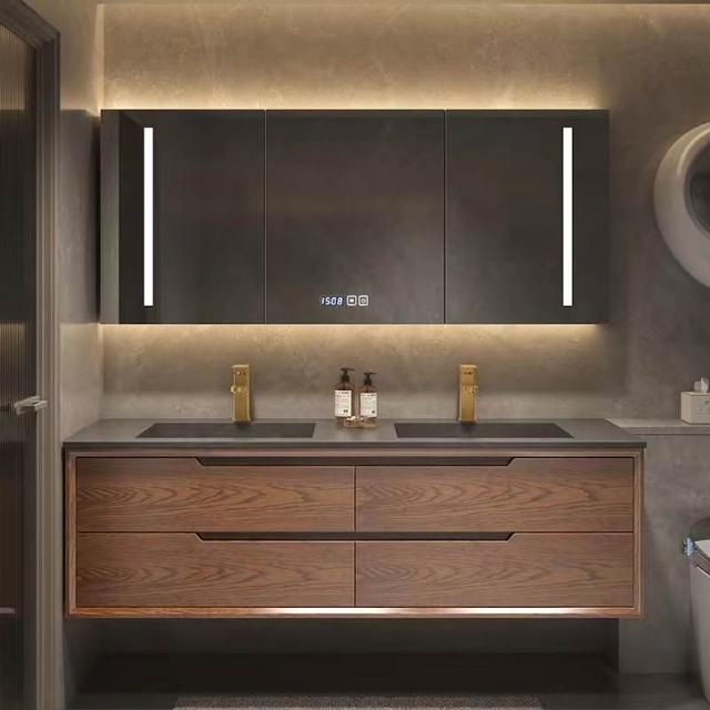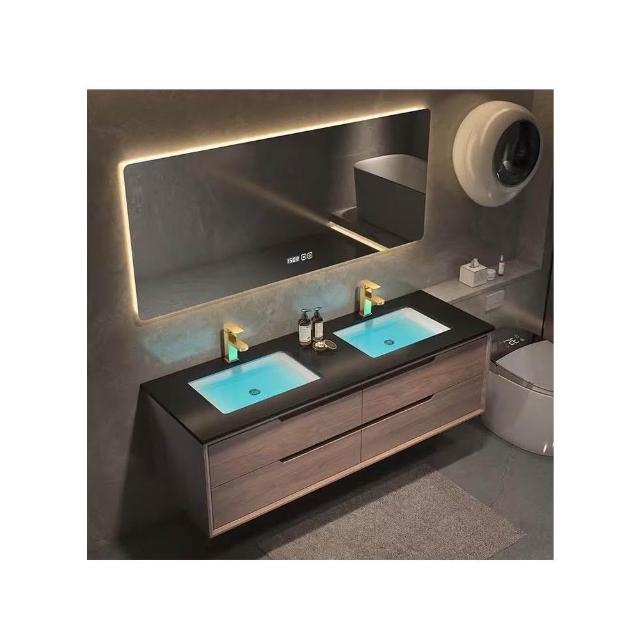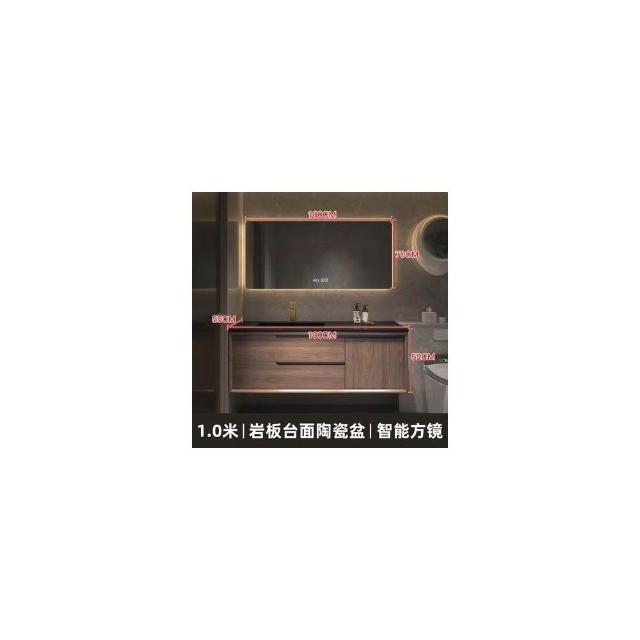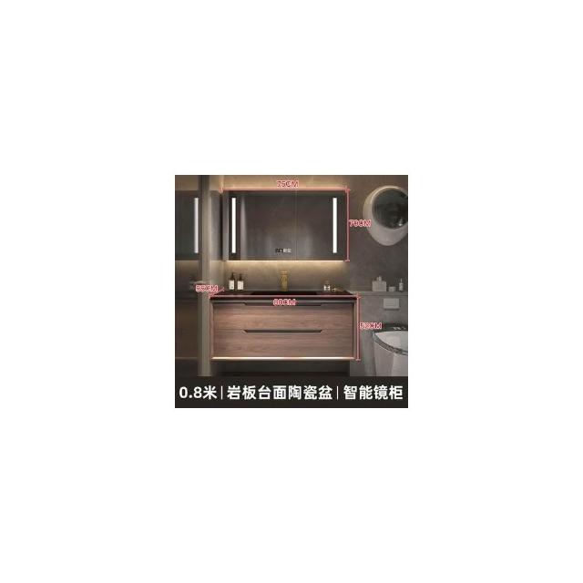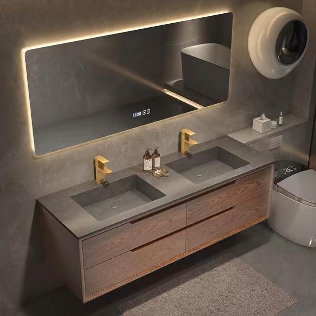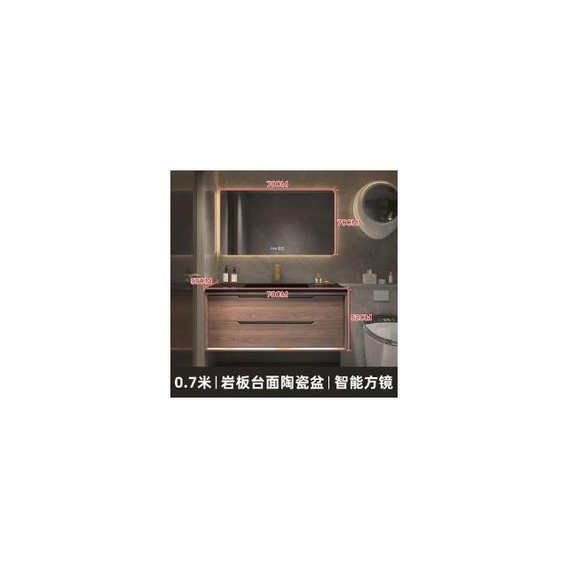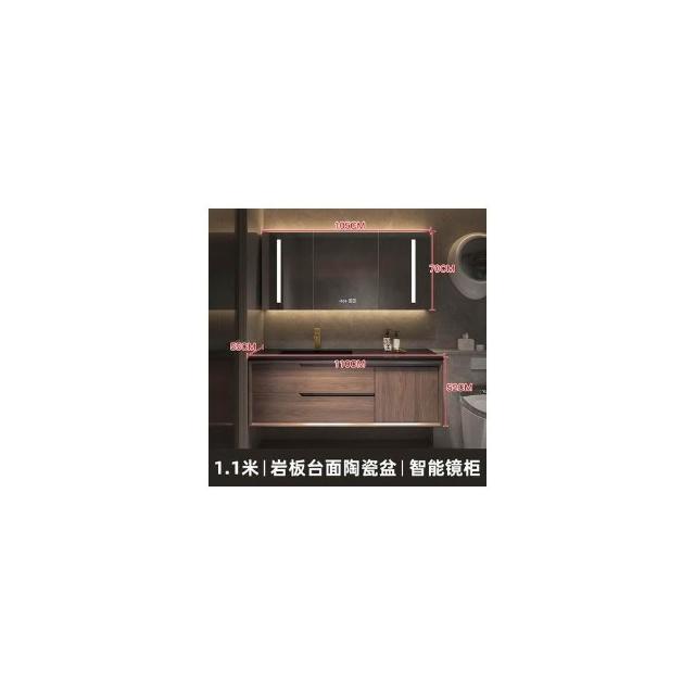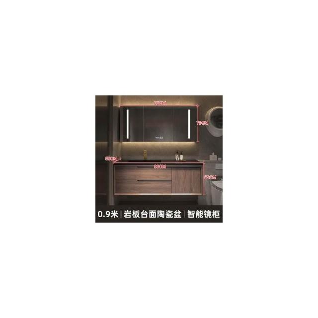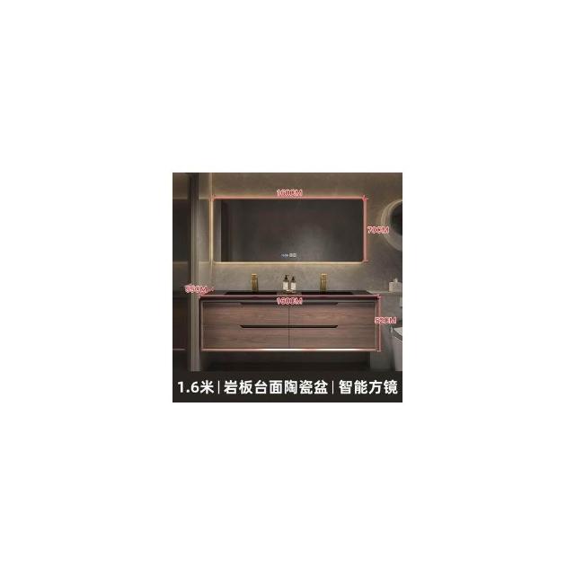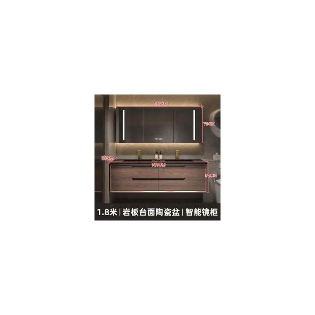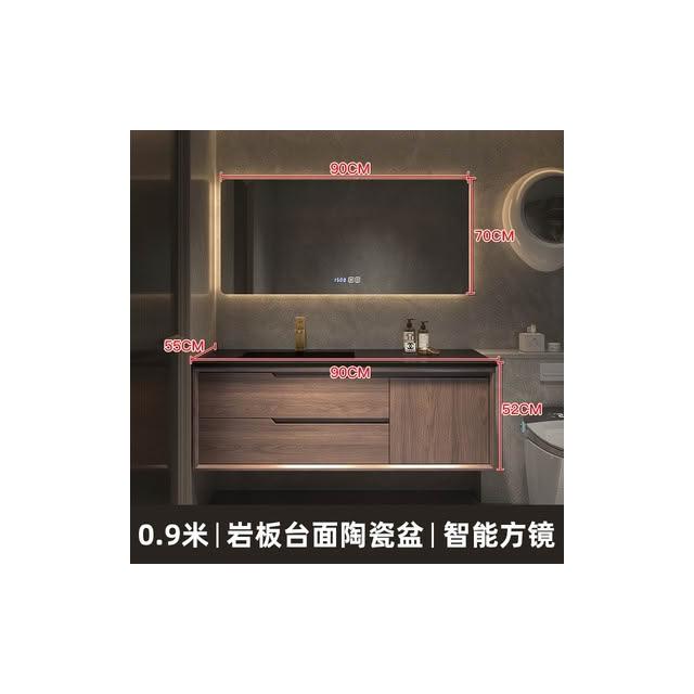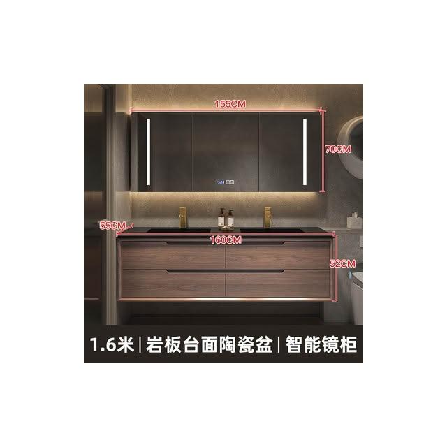 新中式浴室櫃陶瓷一體盆衛生間紅橡木岩板洗手台智能雙盆弔櫃組合 浴櫃