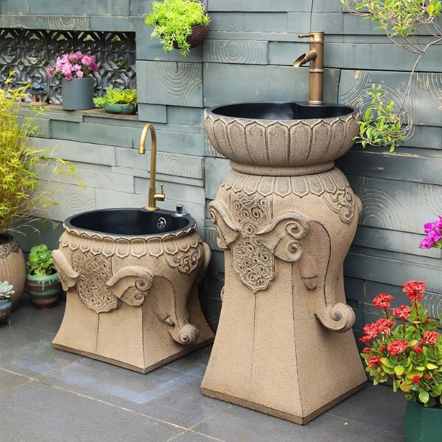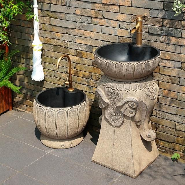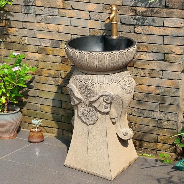 免運 新中式戶外洗手池陽台露台創意立柱式洗手盆花園室外庭院洗手台盆 洗手盤 洗手台