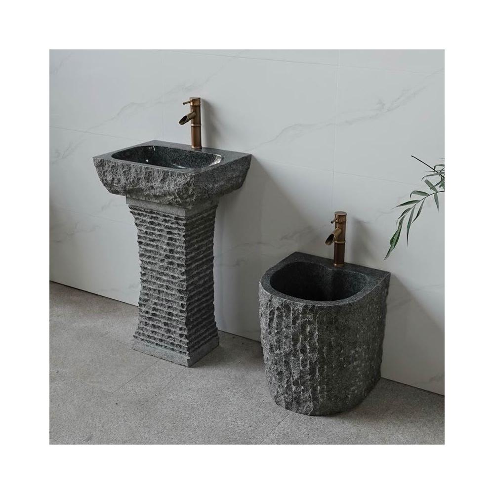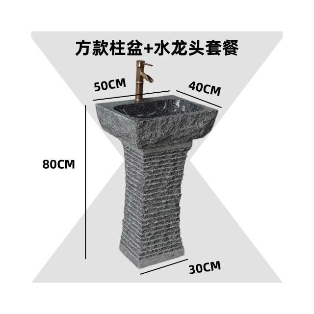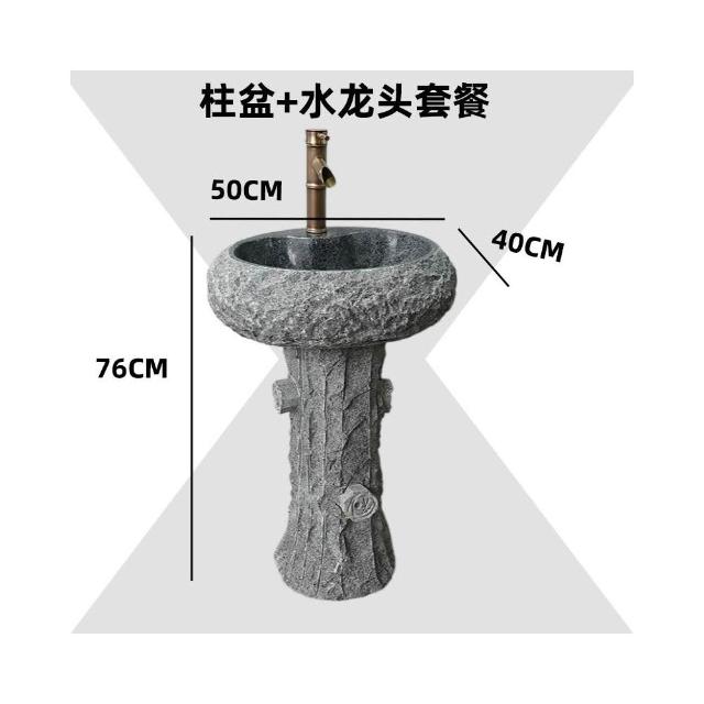 免運 天然石頭洗手盆戶外庭院洗臉立柱盆一體大理石陽台室外花園水池槽 洗手盤 洗手台