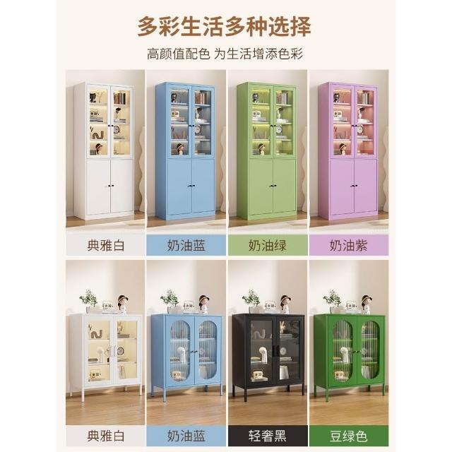 鐵皮書櫃玻璃門防塵書架鐵藝置物櫃家用展示櫃客廳(層架/展示櫃/鐵架/置物架/鐵力士架/收納櫃/架子)