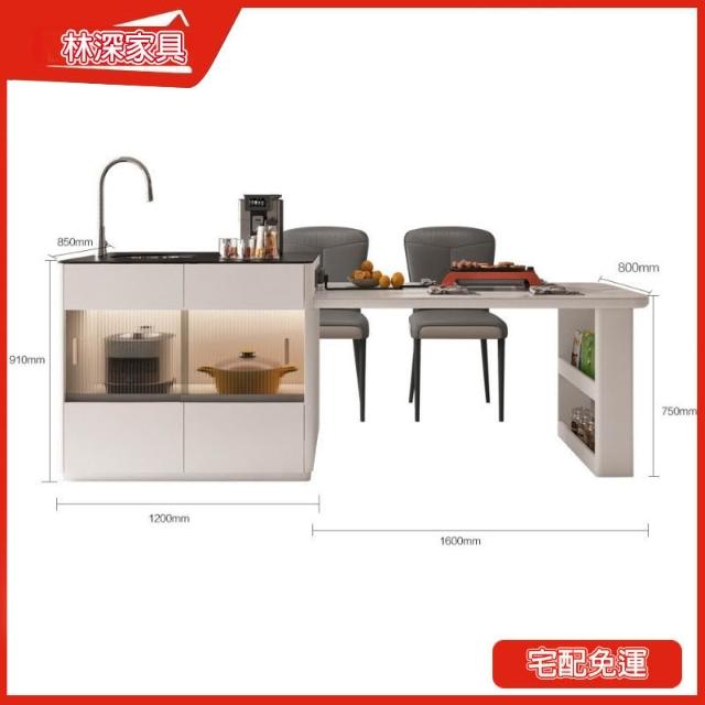 巖闆實木島臺餐桌一體 帶水槽大餐廳收納中島意式極簡伸縮款島式(中島/中島餐桌/吧台桌/中島桌/中島)