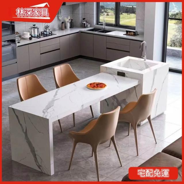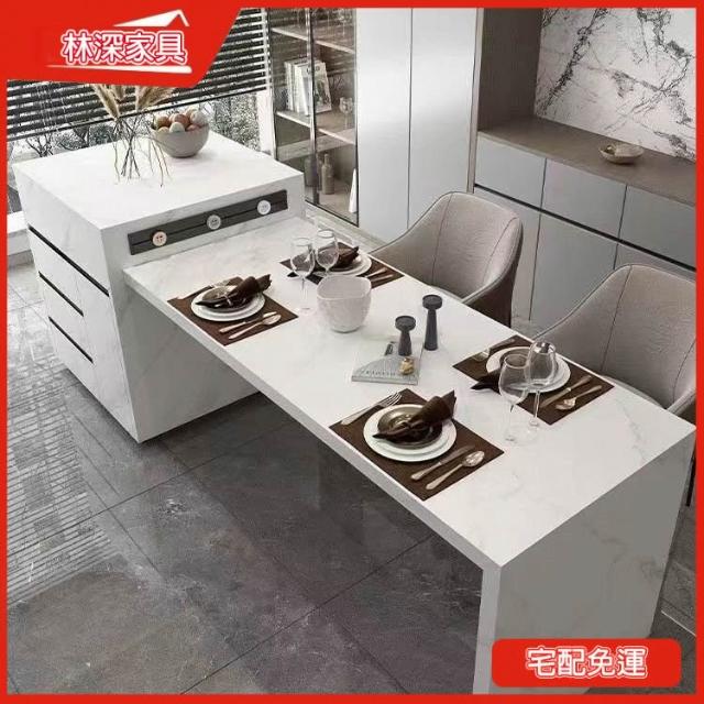 伸縮島臺餐桌一體 巖闆家用開放式廚房吧臺 輕奢小戶型餐廳(中島/中島餐桌/吧台桌/中島桌/中島櫃)